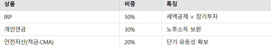 - 퇴직금은 단기 자금이 아니므로, 장기 투자를 통해 수익률을 극대화해야 함