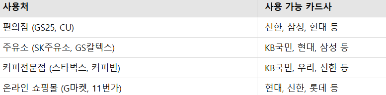 특히 백화점, 대형마트 등은 일부 카드사만 가능하니 사전 점검 필수!