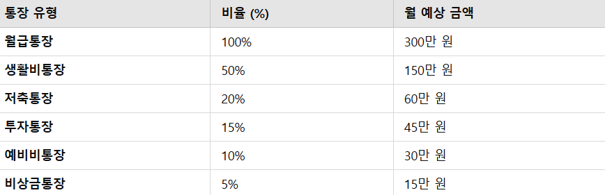 - 각 통장별 용도를 명확히 구분해 돈 관리 최적화